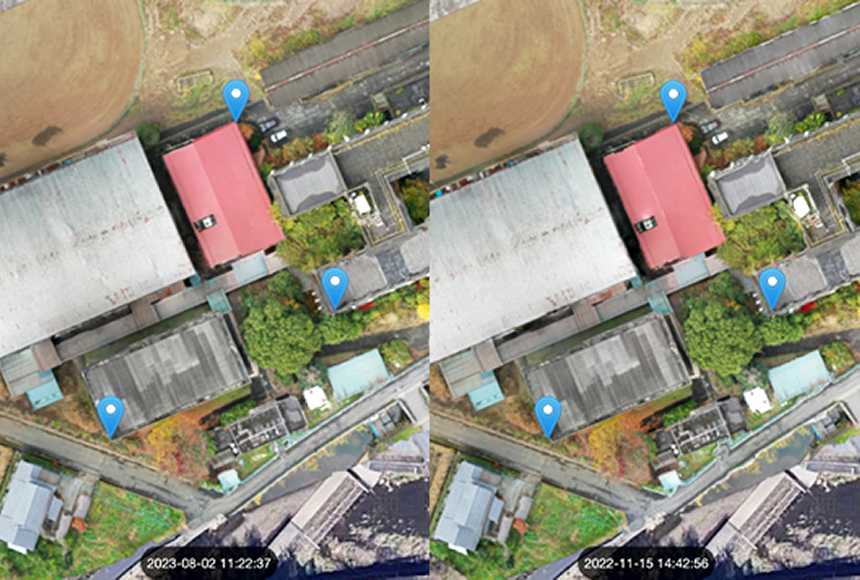 位置補正済み画像で、時系列比較にズレなし・手間なし